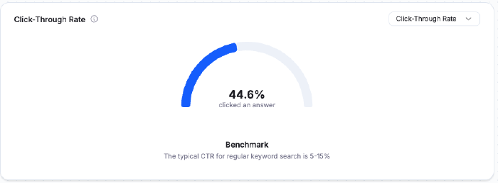 Measures the percentage of search result clicks relative to the total number of queries. This statistic might be affected if you have Raffle Summary enabled.